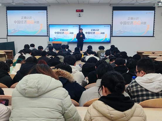 本次学习紧扣当前经济形势,活动中,王国栋围绕宏观经济政策、产业升级、青年发展机遇等核心内容展开分享,通过政策解读、案例分析与互动问答相结合的方式,帮助同学们厘清经济热点背后的逻辑,增强对中国经济韧性与活力的认识。现场氛围热烈,学生专注聆听,积极思考,为后续学习与职业规划积累了宝贵见解。