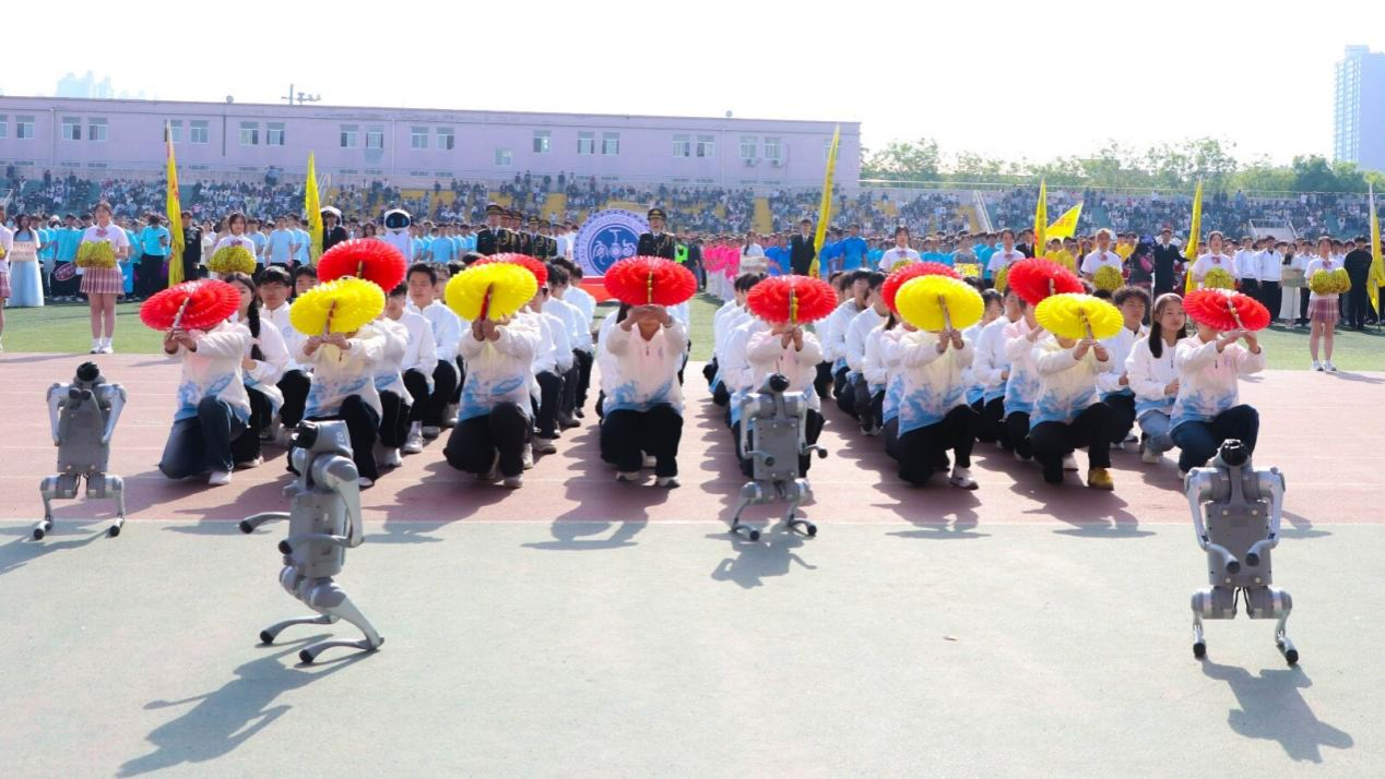 黄姝娟老师带领的学生开发团队进行编程设计的智能机器狗带来精彩表演,机械动作精准有力、智能交互灵动自如,生动展现出智能军工的科技魅力与创新活力。在场师生无不赞叹,这正是兵器司机社