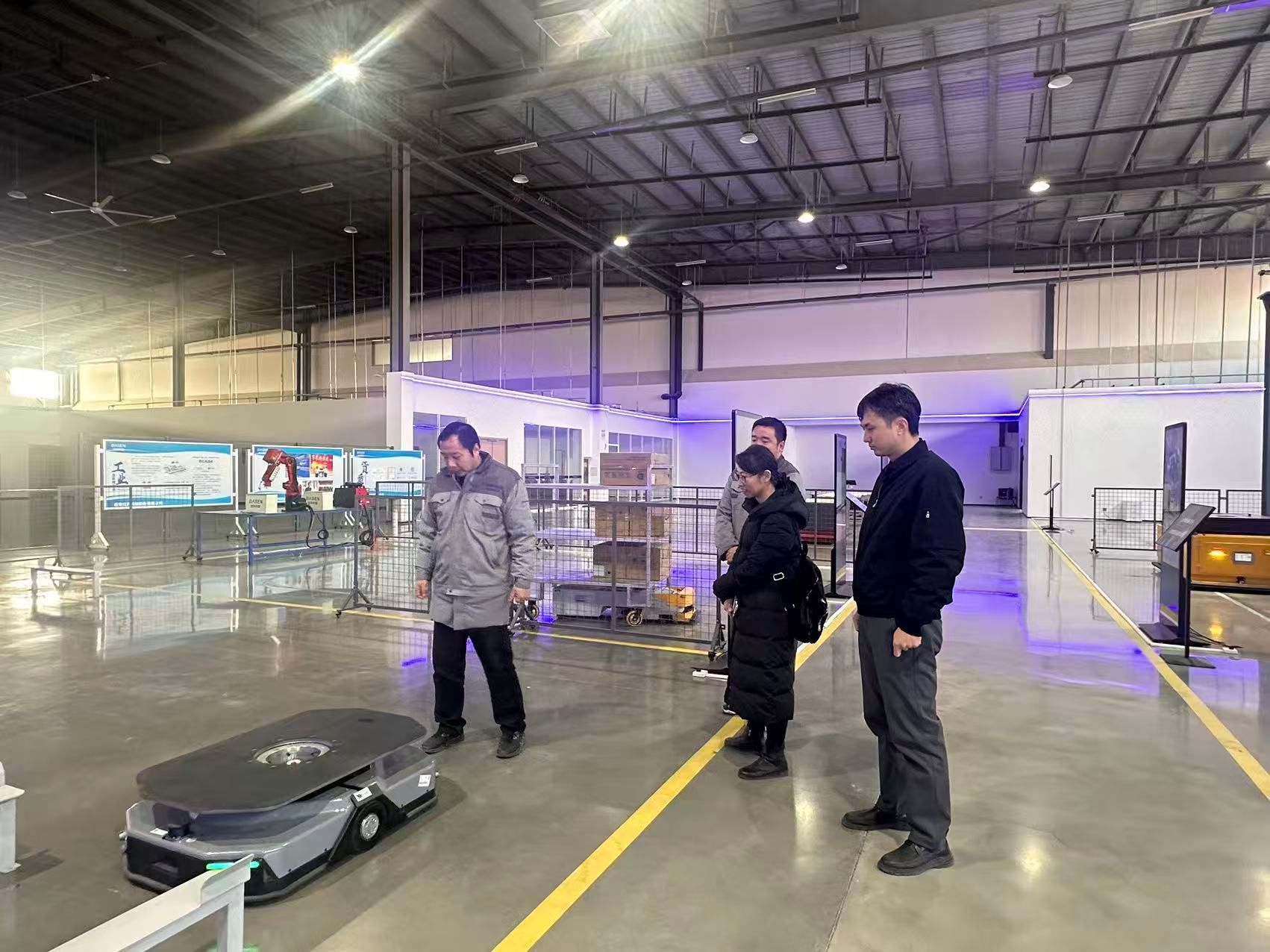 梁伟樯一行参观公司展厅与机器人动态演示场景过程中,企业详细介绍了在研在产的核心产品与技术体系。随后的座谈会上,王小超系统阐述了公司的业务布局与发展规划,祁鹏飞则针对重点产品的研发进展与技术优势进行说明。